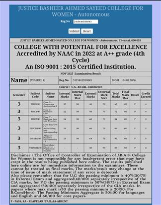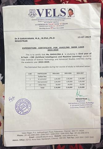Fee donation Rotary Club of Madras Magnum paid 4th semester fees. . .